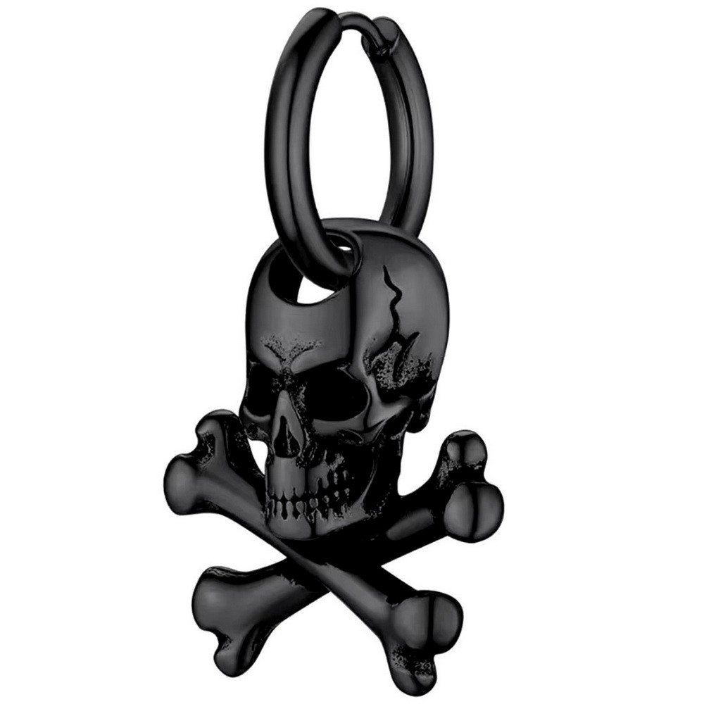 Сережка кільце череп з кістками чорна SP-93 (1 шт)
